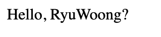 Hello,{이름}을 날려주는 간단한 서버가 완성되었습니다. 저는 "Hello, RyuWoong?" 으로 입력했는데, 원하시는 이름에 맞게 입력하시면 됩니다.