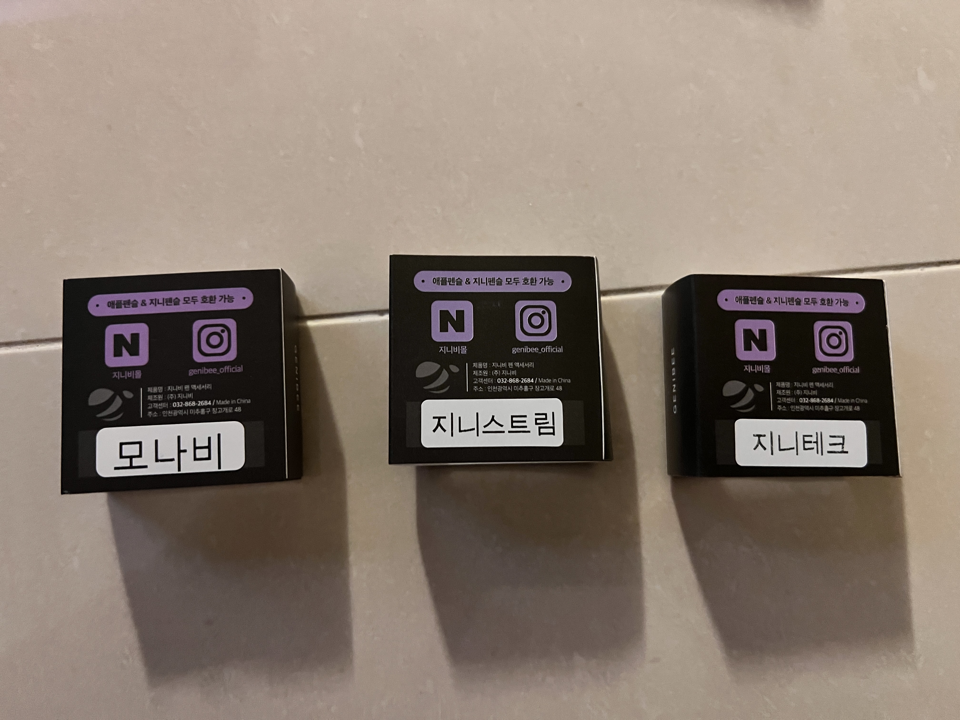 종이곽으로 싸져 있는 케이스 안에 펜촉이 하나씩 담겨 있습니다. 자세히보면 모나비만 정품 펜슬과 비슷하게 하얀색 펜촉이고, 지니스트림, 지니테크는 투명한 플라스틱과 메탈촉 구성으로 되어있습니다. 하나씩 낱개로 포장으로 케이스와 함께 있어 괜찮아보입니다. 각 펜촉의 네이밍을 봐서 어떤 느낌을 지향하는지 딱 감이오시죠? 우리가 익숙한 볼펜들 모나미 , 유니스트림, 하이테크 느낌을 살린 펜촉이라고 할 수 있겠습니다.